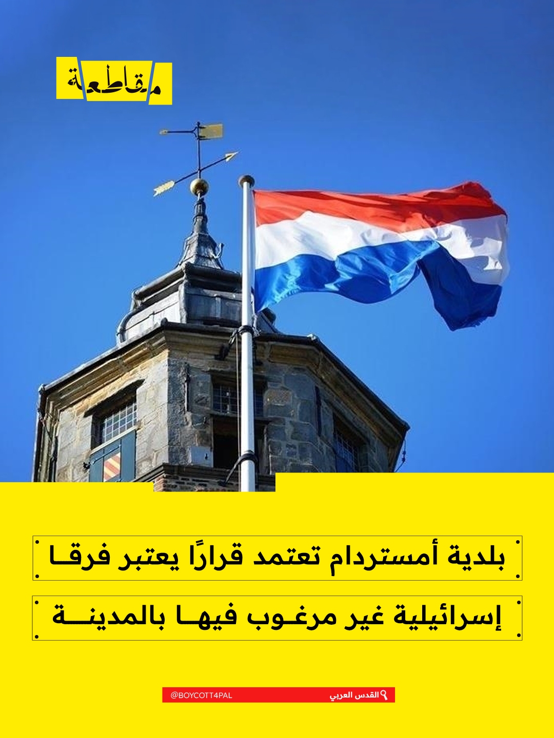وافق مجلس بلدية العاصمة الهولندية أمستردام، اليوم الأربعاء، على مشروع قرار ينص على أن الأندية الرياضية القادمة من دول "تساهم في الاحتلال أو العنصرية" غير مرغوب فيها بالمدينة، وخص منها بالذكر الأندية التي تشارك أو تدعم سياسات الضم غير القانونية والعنصرية للاحتلال.