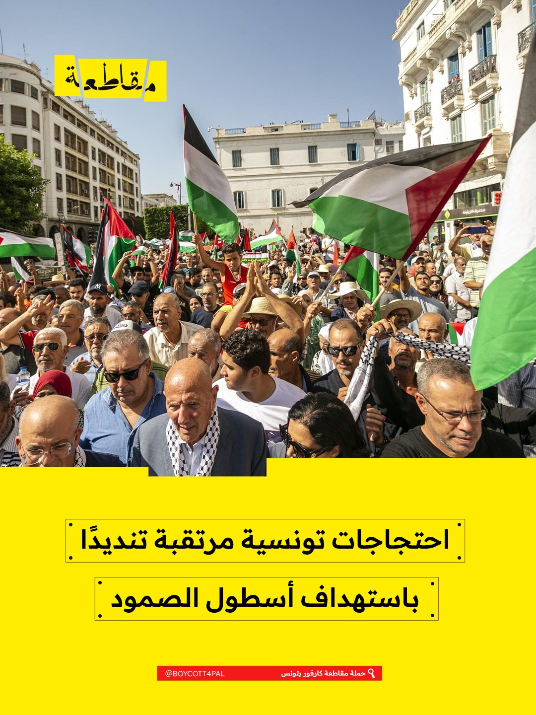 دعت مجموعة "حملة مقاطعة كارفور بتونس" جماهير تونس للمشاركة في وقفات اليوم، الأربعاء 24 سبتمبر، دعمًا لغزة وتنديدًا باستهداف سفن أسطول الصمود، معتبرة الاعتداء تهديدًا مباشرًا للجهود الرامية لكسر الحصار عن القطاع.