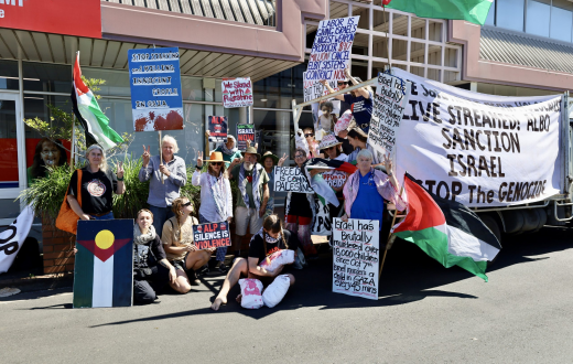تظاهر داعمو فلسطين في مكتب النائبة العمالية جانيل سافين بمدينة ليزمور، ضمن موجة من التحركات في مختلف أنحاء أستراليا، للضغط على الحكومة من أجل إنهاء تجارة الأسلحة وفرض عقوبات شاملة وقطع العلاقات مع الاحتلال.