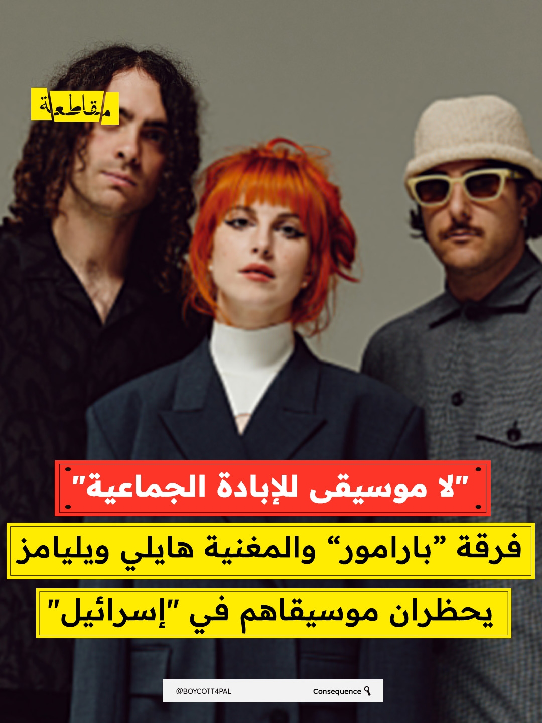 وتدعم الحملة، التي انضم إليها مئات الفنانين وعشرات شركات الإنتاج، المقاطعة كتنديد بالإبادة الجماعية في غزة، والتطهير العرقي في الضفة الغربية المحتلة، والقمع السياسي للجهود المؤيدة لفلسطين. وكان من أوائل الموسيقيين المنضمين إليها فرق مثل "ماسيف أتاك"، "نيكاب"، "فونتينز دي سي"، "رينا ساواياما"، و"جاپانيس بريكفاست". وبذلك، أصبح كتالوج موسيقى بارامور وأعمال ويليامز المنفردة محظورًا جغرافيًا في "إسرائيل".