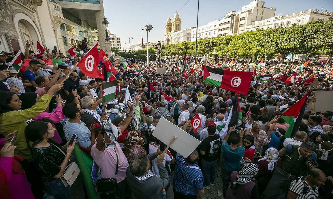 شارك مئات التونسيين، الأربعاء، في وقفة احتجاجية أمام المسرح البلدي وسط العاصمة تونس، تنديدًا بالاعتداء على "أسطول الصمود" العالمي المتجه إلى قطاع غزة لكسر الحصار الإسرائيلي.