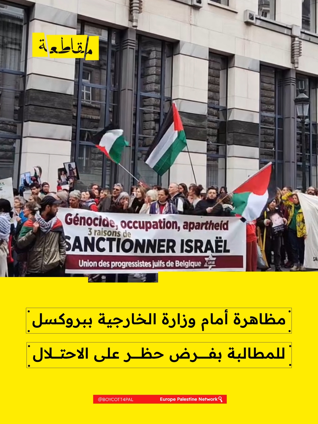 تجمع محتجون اليوم أمام وزارة الخارجية في بروكسل مطالبين بتنفيذ إجراءات عاجلة لحماية الشعب الفلسطيني. وشددوا على ضرورة فرض حظر عسكري شامل على "إسرائيل"، ووقف جميع التجارة والاستثمارات مع المستوطنات الإسرائيلية، وقطع الشراكات مع الشركات المتواطئة في انتهاكات حقوق الإنسان.