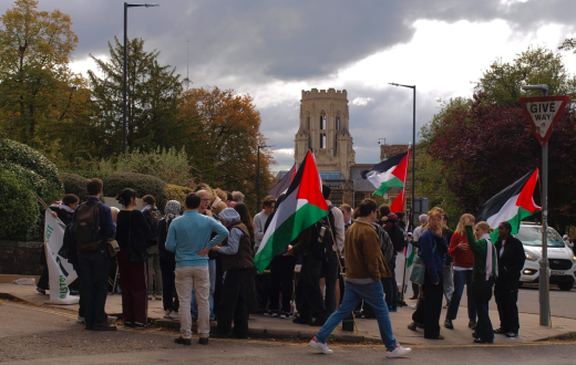 شهدت جامعة بريستول في 24 سبتمبر/أيلول، مسيرة احتجاجية أمام حدائق رويال فورت بجوار مجلس الشيوخ، شارك فيها عشرات الطلاب المؤيدين لفلسطين، للتنديد باستثمارات الجامعة وشراكاتها البحثية مع شركات دفاع مثل "بي إيه إي سيستمز" و"رولز رويس"، المتهمة بتزويد الاحتلال بالأسلحة المستخدمة في حرب غزة.
