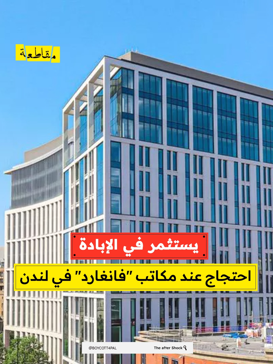 وقام النشطاء المتضامين مع فلسطين برش الطلاء الأحمر على واجهة المكاتب في تنديد بالاستثمارات الأخيرة للمجموعة في شركة "إلبيت سيستمز" الصهيونية ، أكبر مصنّع للأسلحة لدى الاحتلال ، والتي تستخدم في الإبادة على غزة.