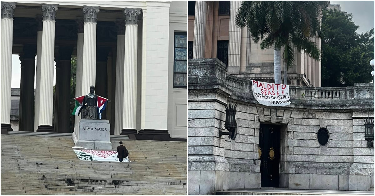 تعليق لافتة “اللعنة على إسرائيل” في إحدى جامعات كوبا