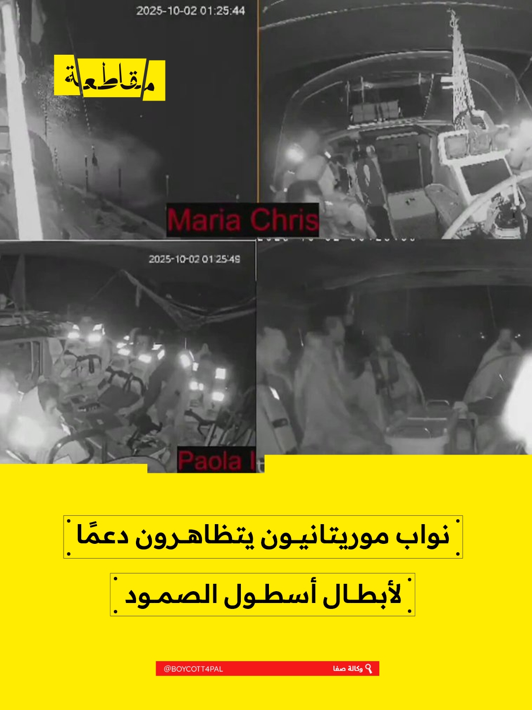 تظاهر عشرات النواب الموريتانيين مساء الأربعاء أمام مبنى البرلمان دعمًا لأسطول الصمود العالمي، الذي أبحر حاملًا مساعدات إنسانية لغزة.