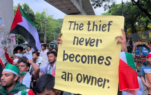 شهدت جامعة دكا في بنغلاديش مظاهرة نظمتها جمعية بنغلاديش جاناتانتريك تشاترا سانساد (باغشاس) تضامنًا مع أسطول الصمود العالمي الذي اختطفته "إسرائيل"، ودعمًا لحق الشعب الفلسطيني في تقرير مصيره.