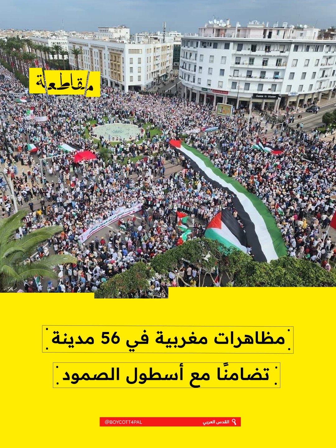 نظّمت الهيئة المغربية لنصرة قضايا الأمّة، الجمعة، 105 مظاهرات في 56 مدينة مغربية، بينها الدار البيضاء والرباط وأكادير ووجدة، تضامنًا مع غزة ورفضًا للهجوم الإسرائيلي على أسطول الصمود العالمي.