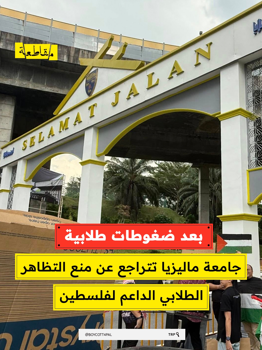 أصدرت جامعة ماليزيا (UM) بيانًا رسميًا بعد احتجاجات طلابية بسبب منعهم من المشاركة في مسيرة تضامن مع فلسطين، تراجعت فيه عن قرارها ونفت منعها المظاهرة , مؤكدة أن “جميع أفراد المجتمع الجامعي يقفون إلى جانب فلسطين ويتعاطفون بشدة مع ما يواجهه سكان غزة من ظلم وإبادة جماعية مستمرة”.