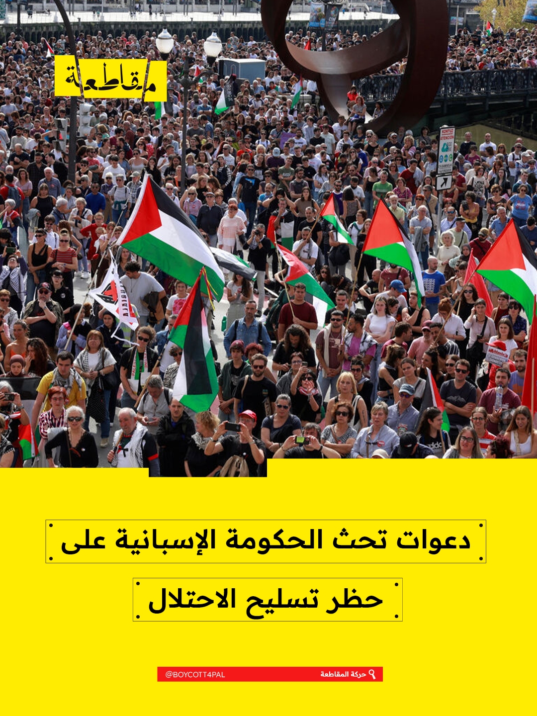 دعت حركة المقاطعة بالتعاون مع مجموعات التضامن في إسبانيا مثل الجالية الفلسطينية في كاتالونيا، جميع الكتل البرلمانية في الكونغرس الإسباني إلى التصويت لصالح مشروع المرسوم الملكي رقم 2025/10، الذي يفرض حظرًا عسكريًا على الاحتلال، معتبرة أن ذلك خطوة مهمة نحو مكافحة الإبادة الجماعية التي يتعرض لها الشعب الفلسطيني.