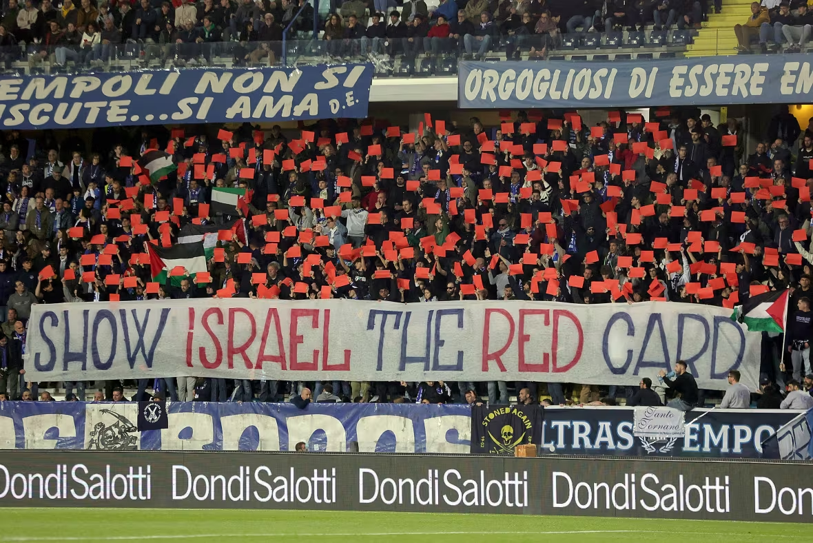 وفي مدينة أوديني الإيطالية، شهدت مباراة تصفيات كأس العالم احتجاجات حاشدة نظمها مئات المتظاهرين تضامنًا مع الشعب الفلسطيني، حيث فاق عدد المحتجين ضعف عدد الحاضرين في المدرجات.