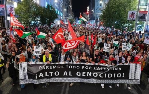تظاهر أكثر من 40 ألف شخص في مدن إسبانية عدة، أبرزها "برشلونة" و"مدريد" و"إشبيلية" و"فالنسيا" و"بلباو"، تضامنًا مع فلسطين ورفضًا للحرب الإسرائيلية على غزة، في إطار إضراب عام دعت إليه النقابات العمالية والجماعات المؤيدة لفلسطين.