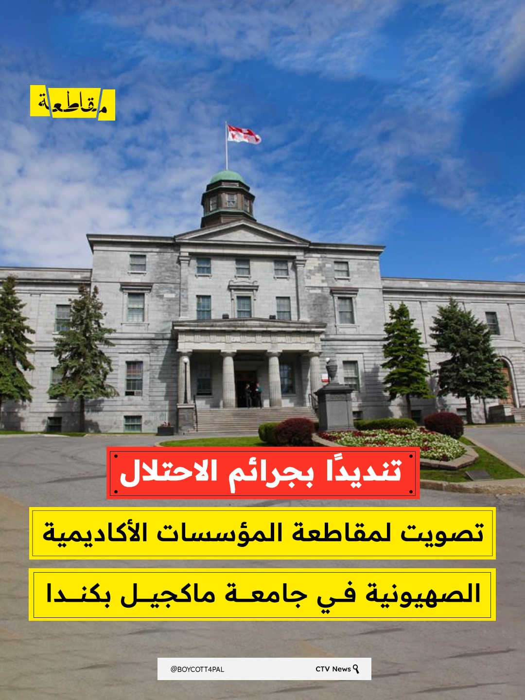 صوّت أساتذة وأمناء مكتبات جامعة ماكجيل في مونتريال بكندا، هذا الأسبوع لصالح مقاطعة المؤسسات الأكاديمية الصهيونية.