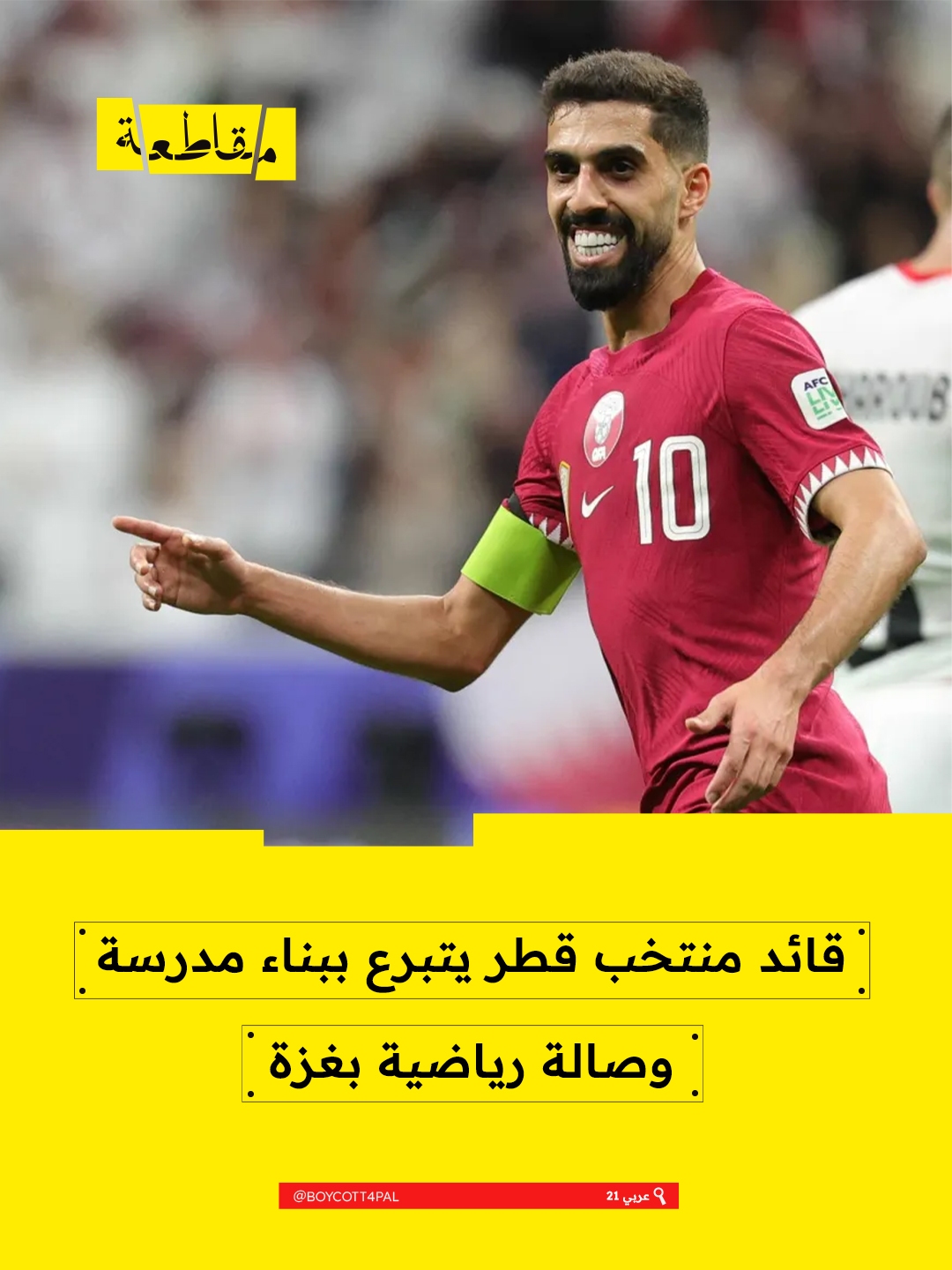 بمناسبة تأهل المنتخب القطري إلى نهائيات كأس العالم 2026، أعلن قائد المنتخب القطري "حسن الهيدوس" تبرعه ببناء مدرسة وصالة رياضية في قطاع غزة.