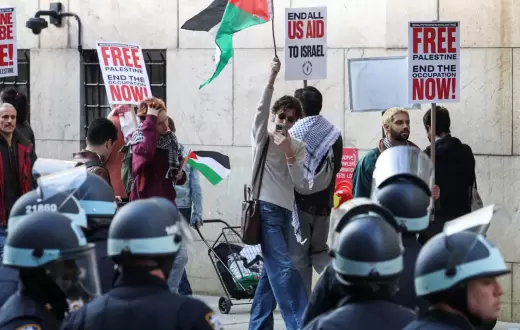 وقال الطالب جوليان ستاجز من Students for a Democratic Society: “إسرائيل شنت حملة تجويع متعمدة على سكان غزة استمرت عامين، تضمنت قطع وصولهم إلى المياه العذبة، مما جعل الزراعة والسيادة الغذائية مستحيلة داخل القطاع”.