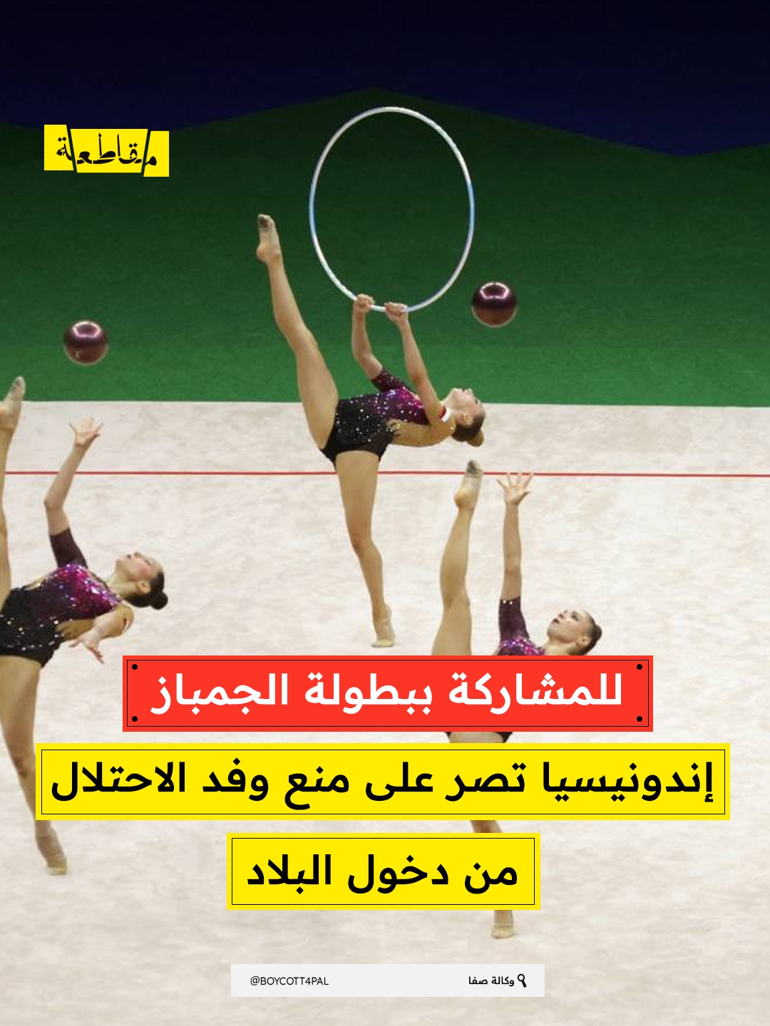 تمسّكت الحكومة الإندونيسية بقرارها عدم منح تأشيرات للوفد الإسرائيلي الراغب في المشاركة ببطولة العالم للجمباز الفني في جاكرتا، مؤكدة أن الخطوة تستند إلى مقتضيات الأمن والمصلحة العامة، وإلى القوانين السارية في البلاد.