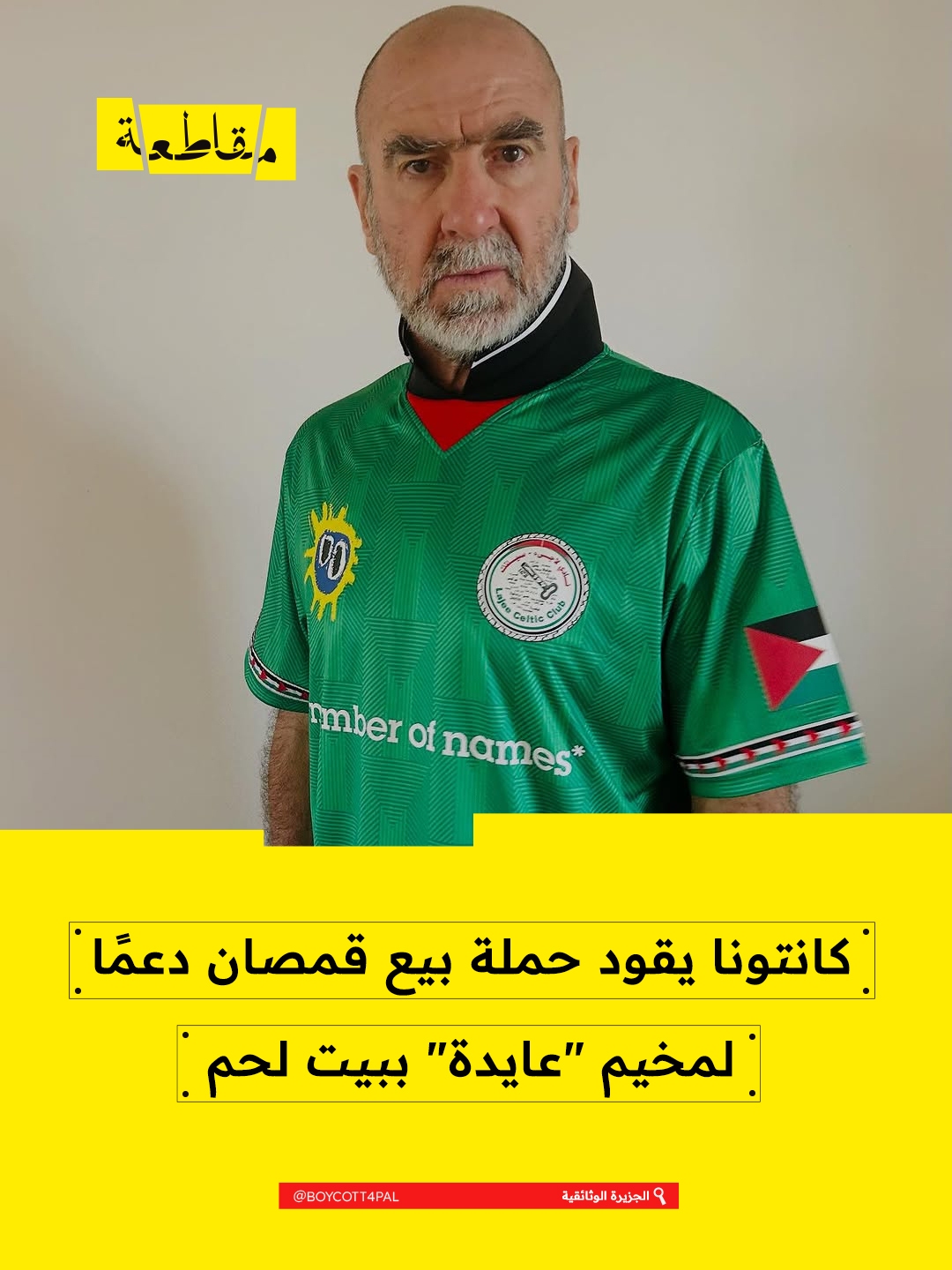 ونشر كانتونا، البالغ من العمر 59 عامًا، صورة له عبر إنستغرام مؤخرًا مرتديًا قميص الفريق، في خطوة رمزية تهدف إلى تسليط الضوء على معاناة اللاجئين الفلسطينيين وإيصال رسالتهم إلى جمهور كرة القدم العالمي.