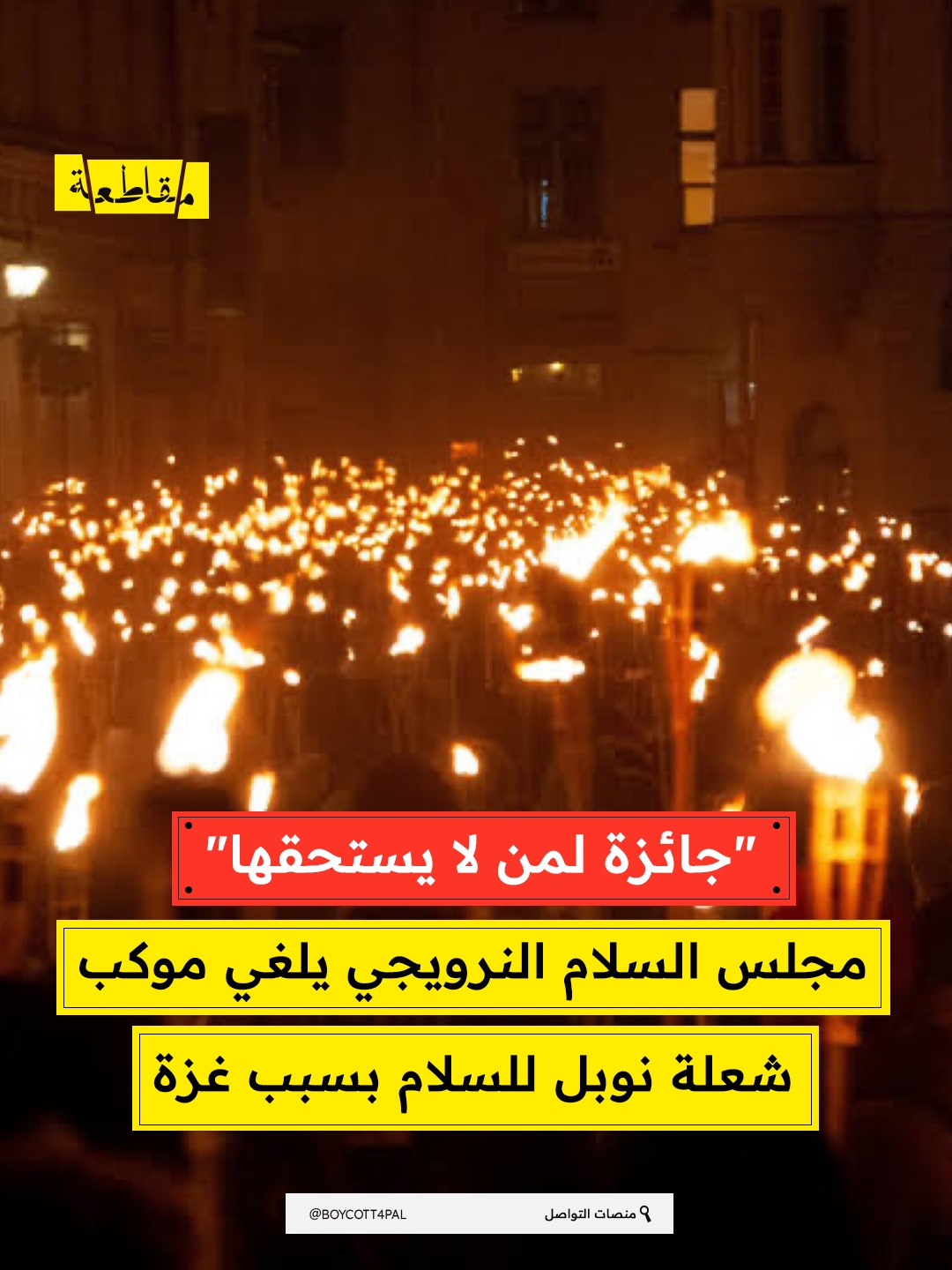 أعلن مجلس السلام النرويجي في أوسلو عن إلغاء موكب شعلة جائزة نوبل للسلام لهذا العام، في سابقة هي الأولى منذ تأسيس المسيرة عام 1954، موضحًا أن القرار جاء احتجاجًا على منح الجائزة لمن لا يجسد قيم السلام والعدالة.