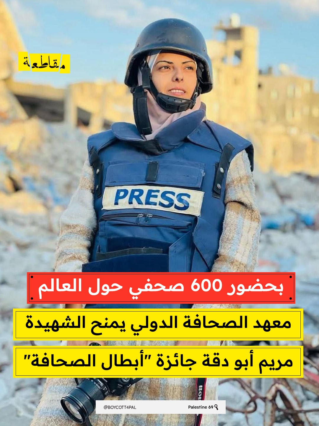 بحضور 600 صحفي من مختلف أنحاء العالم، منحت العاصمة النمساوية فيينا الصحفية الفلسطينية الشهيدة مريم أبو دقة جائزة “أبطال الصحافة” لعام 2025، وهي جائزة تقديرية رفيعة تُمنح للصحفيين الذين يبرزون شجاعتهم في نقل الحقيقة والمهنية الصحفية.
