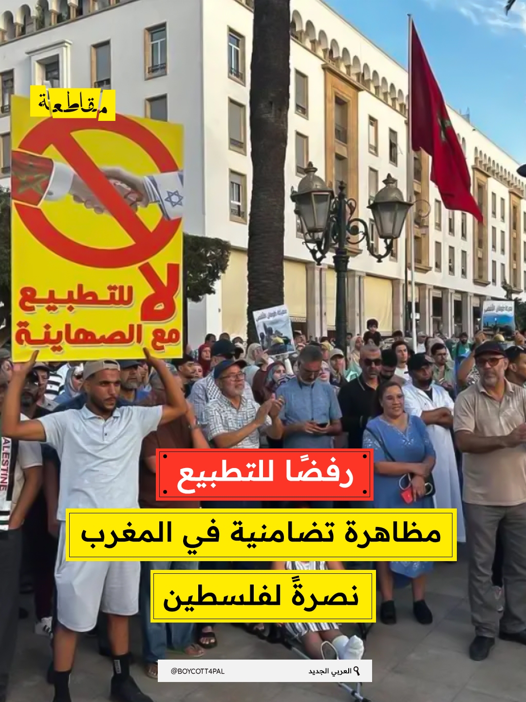 تظاهر عدد من النشطاء المغاربة في العاصمة الرباط تضامنًا مع الشعب الفلسطيني، مطالبين بوقف جرائم الاحتلال وإنهاء الحصار المفروض على غزة، ودعوا حكومتهم لوقف التطبيع مع الاحتلال.