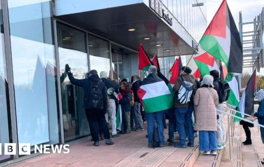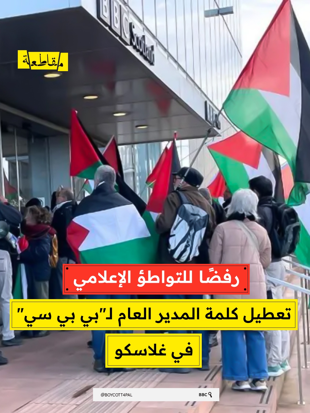 عرقل متظاهرون مؤيدون لفلسطين كلمةً ألقاها تيم ديفي، المدير العام لهيئة الإذاعة البريطانية (بي بي سي)، أمام موظفيها في مدينة غلاسكو، احتجاجًا على انحياز التغطية الإعلامية لصالح الاحتلال للهيئة في حرب الإبادة على غزة.