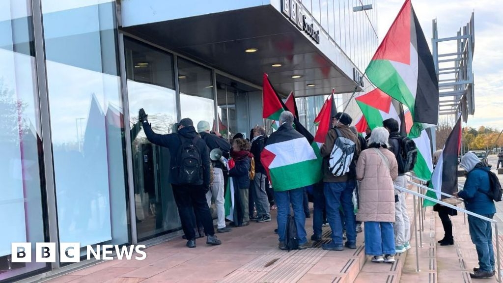 وتجمع نحو 30 متظاهرًا أمام مقر “بي بي سي” في باسيفيك كواي وهم يلوّحون بالأعلام الفلسطينية، ويهتفون “عار على هيئة الإذاعة البريطانية”، فيما قام بعضهم بضرب نوافذ المبنى أثناء الكلمة. وتمكن المحتجون من اختراق الباب الأمامي دون الوصول إلى قاعة الاستقبال الرئيسية.