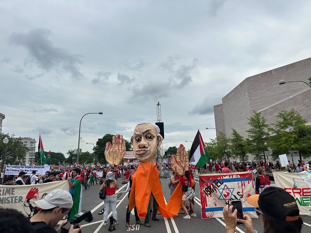 وردد المتظاهرون هتافات مثل مناهضة للصهيونية "الموت للصهيونية"، رافعين الأعلام الفلسطينية وشعارات التضامن، قبل أن يتدخل الأمن لفضّ الاحتجاج.