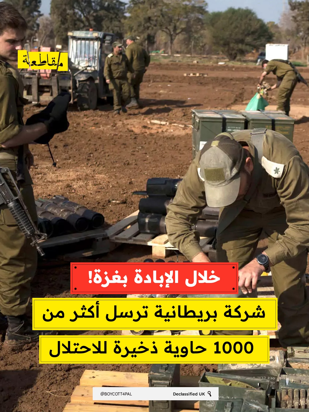 كشفت وثائق شحن اطلعت عليها حصريًا منصتا Declassified وThe Ditch عن قيام شركة بريطانية بإرسال أكثر من ألف حاوية ذخيرة إلى "إسرائيل"، وسط الإبادة في غزة، ما أثار تساؤلات حول فعالية الرقابة البريطانية على تصدير الأسلحة.