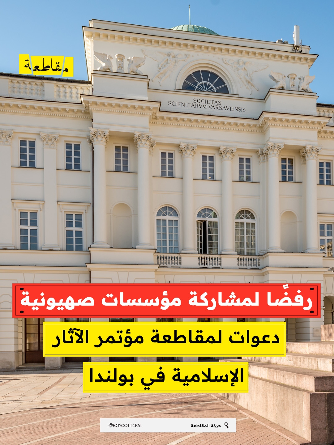 دعت الحملة الفلسطينية للمقاطعة الأكاديمية والثقافية لإسرائيل (PACBI)، جميع المتحدثين والمشاركين إلى الانسحاب من مؤتمر الآثار الإسلامية (ISAC) المقرر عقده في وارسو، بولندا، بين 5 و8 نوفمبر/تشرين الثاني 2025.