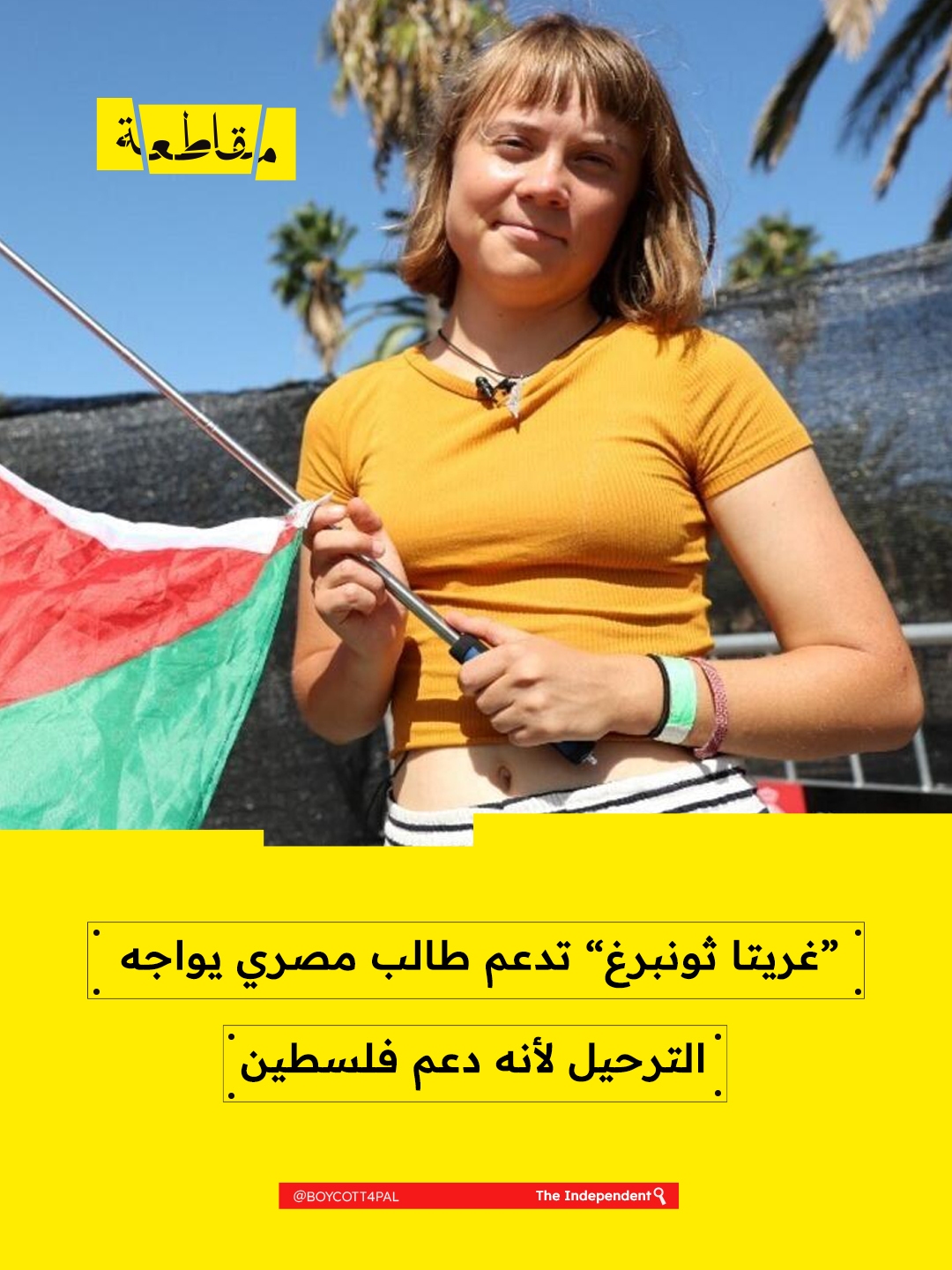 أعربت الناشطة البيئية غريتا ثونبرغ عن دعمها العلني للطالب المصري أسامة غانم، الذي يواجه خطر الترحيل من بريطانيا بعد أن ألغت جامعة كينغز كوليدج لندن كفالته لتأشيرته الدراسية على خلفية نشاطه المؤيد لفلسطين.