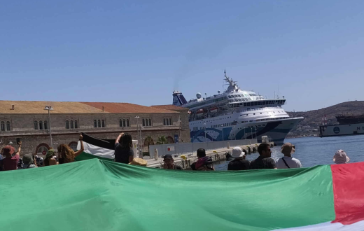 احتشد متضامنون مع فلسطين في ميناء أرغوستولي بجزيرة كيفالونيا اليونانية احتجاجًا على وصول سفينة سياحية تقل نحو 1500 إسرائيلي، في رسالة رفض لعودة السياحة الإسرائيلية إلى الموانئ الأوروبية رغم استمرار الإبادة في غزة.