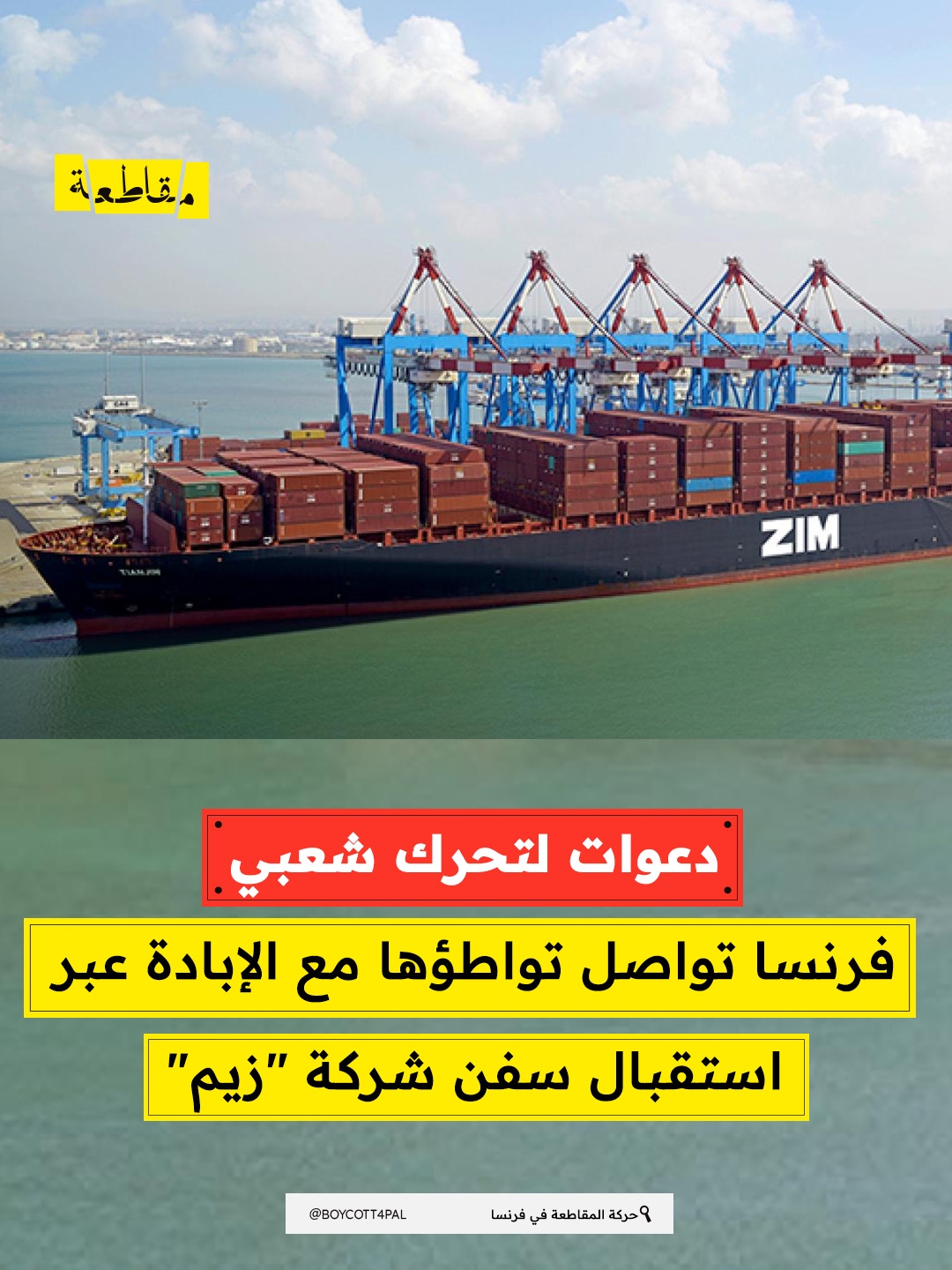 تواصل فرنسا تورطها في دعم آلة الحرب الإسرائيلية، إذ من المقرر أن ترسو سفينة MSC Mombasa التي تُديرها شركة "زيم" الإسرائيلية في ميناء لوهافر بتاريخ 4 نوفمبر، تليها سفينة "زيم نيوزيلندا" التي ستصل إلى ميناء فوس سور مير في 5 نوفمبر.