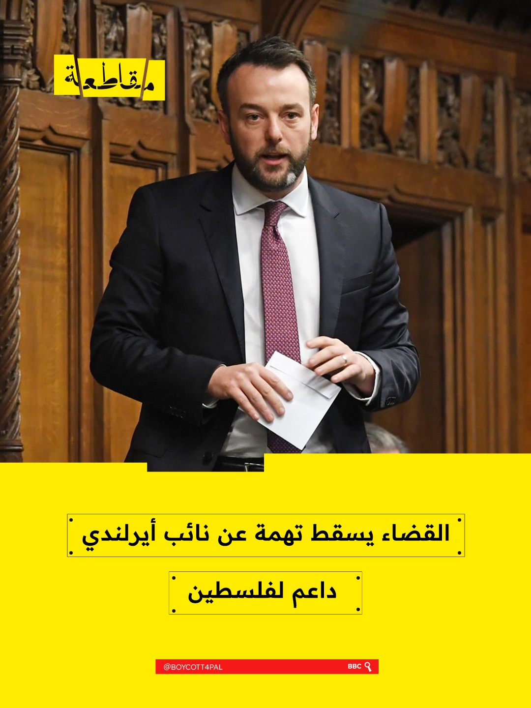 تم إسقاط التهمة الموجّهة إلى النائب عن حزب SDLP في أيرلندا الشمالية، “كولوم إيستوود”، بسبب مشاركته في مسيرة مؤيدة لفلسطين وُصفت بأنها “غير قانونية”، وذلك بعد قبوله توبيخًا رسميًا يُعرف باسم “تحذير مستنير”.
