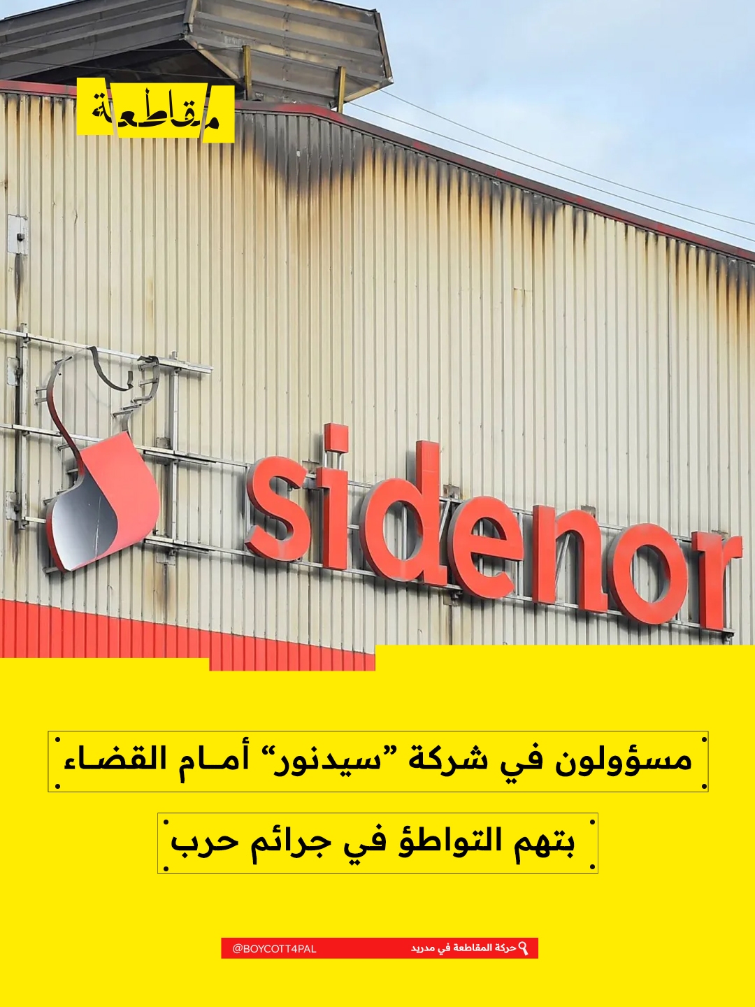 شركة “سيدنور” (Sidenor) هي شركة إسبانية متخصصة في إنتاج الفولاذ عالي الجودة، وتُعد من أبرز الموردين لقطاعات الصناعات العسكرية والطاقة والبنية التحتية في أوروبا. تُتهم الشركة بتوريد مواد تُستخدم في تصنيع أسلحة ومعدات عسكرية لصالح "إسرائيل"، ما يجعلها موضع انتقادات واسعة من منظمات حقوقية تعتبر أن تعاملاتها تساهم في دعم آلة الحرب الإسرائيلية والانتهاكات ضد المدنيين في غزة.