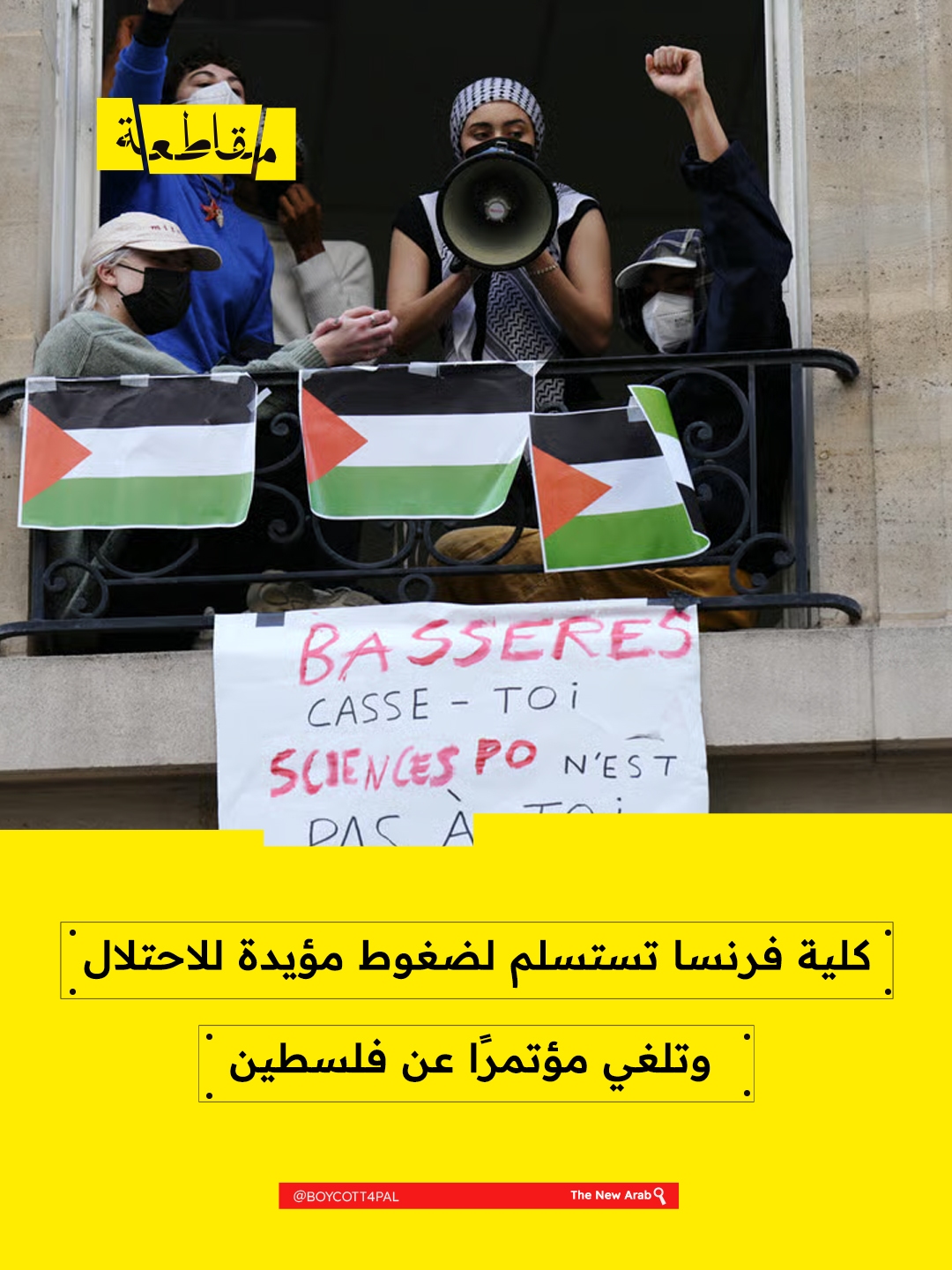 ألغت كلية فرنسا، إحدى أعرق المؤسسات الأكاديمية في أوروبا، مؤتمرًا علميًا بعنوان "فلسطين وأوروبا: ثقل الماضي وديناميكيات المعاصرة" كان من المقرر عقده يومي 13 و14 نوفمبر/تشرين الثاني بالتعاون مع المركز العربي للأبحاث ودراسة السياسات، وذلك تحت ضغط من جماعات يمينية ومؤيدة للاحتلال ووزير التعليم العالي الفرنسي فيليب بابتيست.