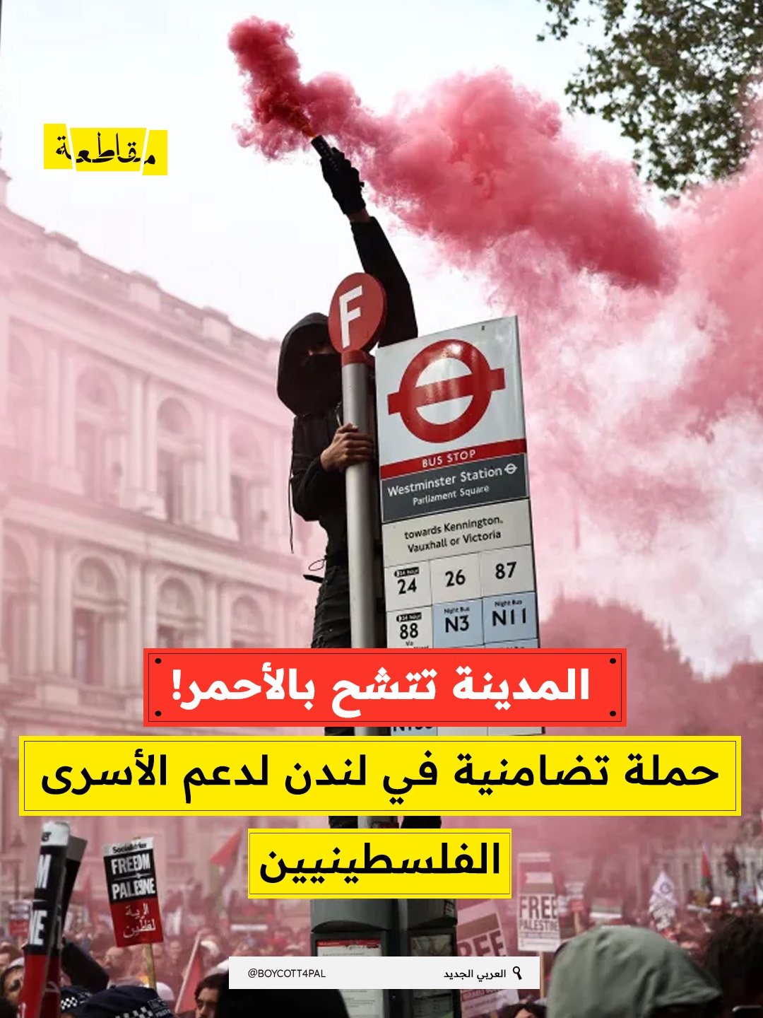 انطلقت في لندن حملة تضامنية جديدة تحت عنوان "إطلاق الرهائن الفلسطينيين"، حيث غمرت شرائط ولافتات حمراء شوارع ويستمنستر في مشهد رمزي يهدف إلى لفت أنظار العالم إلى معاناة أكثر من 9100 أسير فلسطيني ما زالوا يقبعون في سجون الاحتلال الإسرائيلي، بينهم 53 امرأة و400 طفل و3544 معتقلًا إداريًا بلا محاكمة و16 طبيبًا و300 أسير محكوم بالمؤبد.