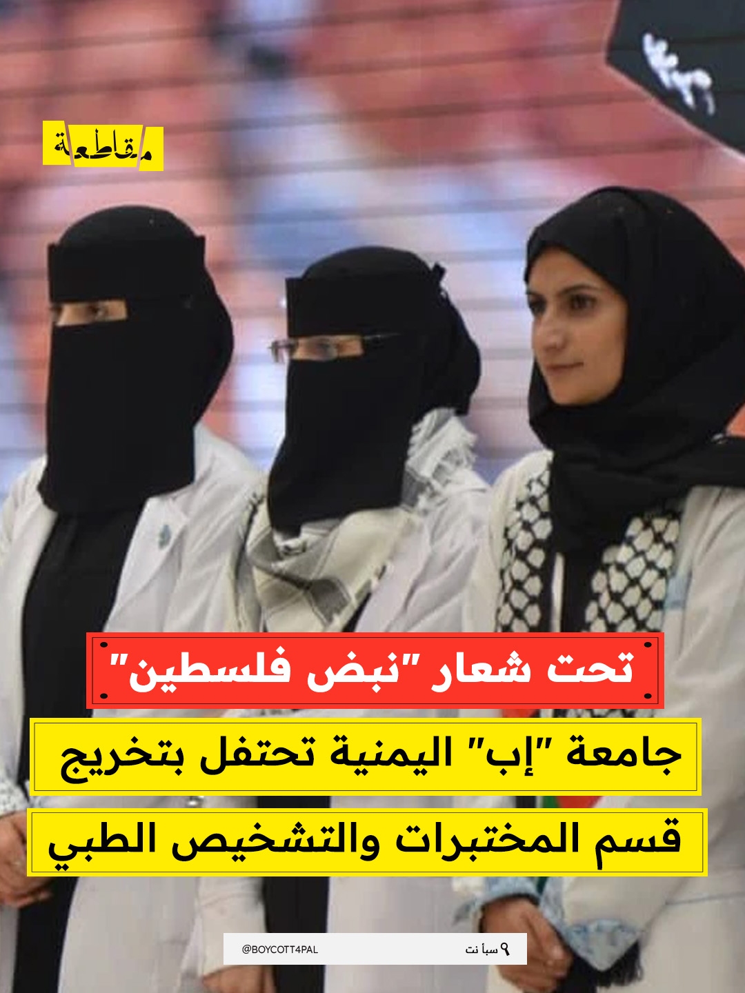 احتفلت كلية الطب والعلوم الصحية بجامعة "إب" بتخريج الدفعة الخامسة من قسم المختبرات والتشخيص الطبي، والتي أطلقت عليها اسم “نبض فلسطين”، تزامنًا مع ذكرى الشهيد لعام ١٤٤٧هـ.