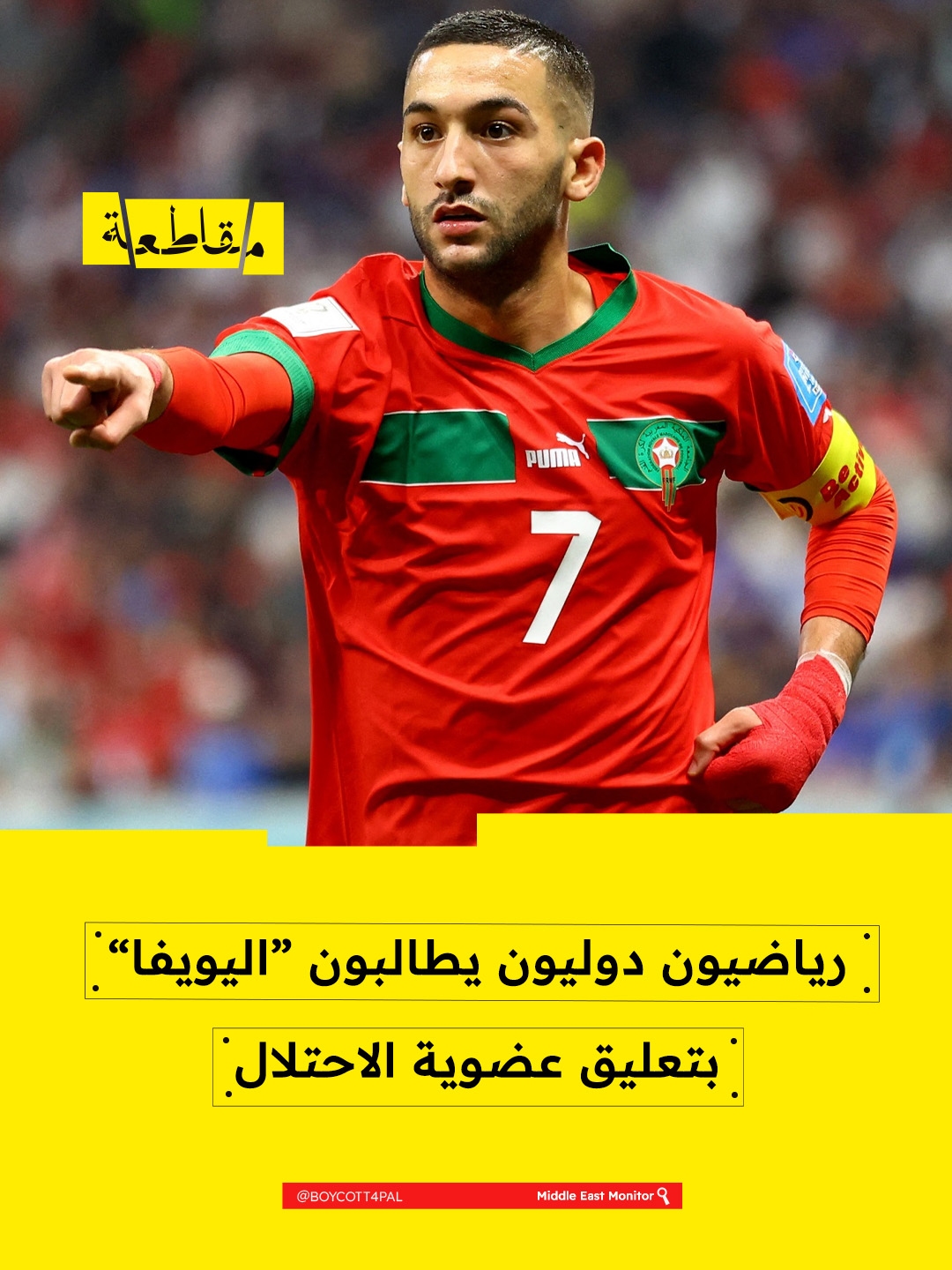 دعا عشرات الرياضيين الدوليين، من بينهم "بول بوغبا" و"حكيم زياش" و"أنور الغازي"، الاتحاد الأوروبي لكرة القدم (يويفا) إلى تعليق عضوية "إسرائيل" بسبب جرائمها بحق الفلسطينيين.