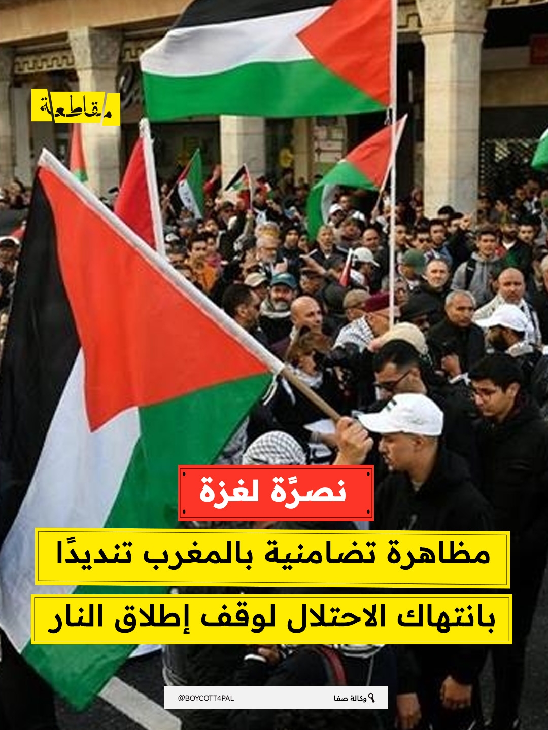 تظاهر عشرات المغاربة في العاصمة الرباط، مساء أمس الجمعة 14 نوفمبر ، تضامنًا مع القضية الفلسطينية، وتنديدًا باستمرار انتهاكات "إسرائيل" لاتفاق وقف إطلاق النار في قطاع غزة.
