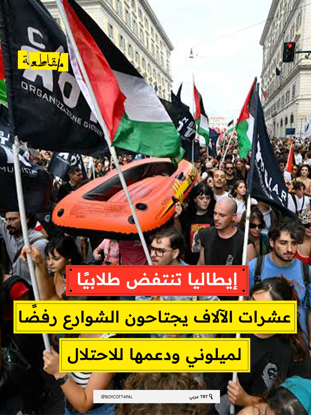 إيطاليا تنتفض طلابيًا ..عشرات الآلاف يجتاحون الشوارع رفضًا لميلوني ودعمها للاحتلال
