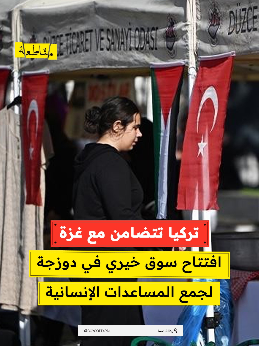 وقد تم تنظيم السوق من قبل بلدية دوزجة، ومجلس المدينة، والهلال الأحمر التركي، ومنصة دعم فلسطين، حيث تضمن بيع المنتجات المحلية والمأكولات والمشغولات اليدوية، على أن تصل العائدات إلى غزة على شكل أدوية وحليب أطفال ومواد غذائية.