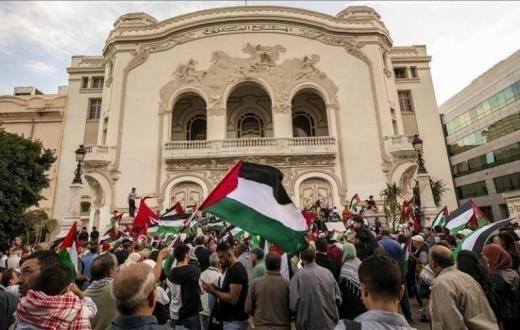 وجاءت الوقفة بدعوة من جمعية "أنصار فلسطين" تحت شعار "غزة مشلولة والمأساة مستمرة" أمام المسرح البلدي وسط العاصمة تونس.