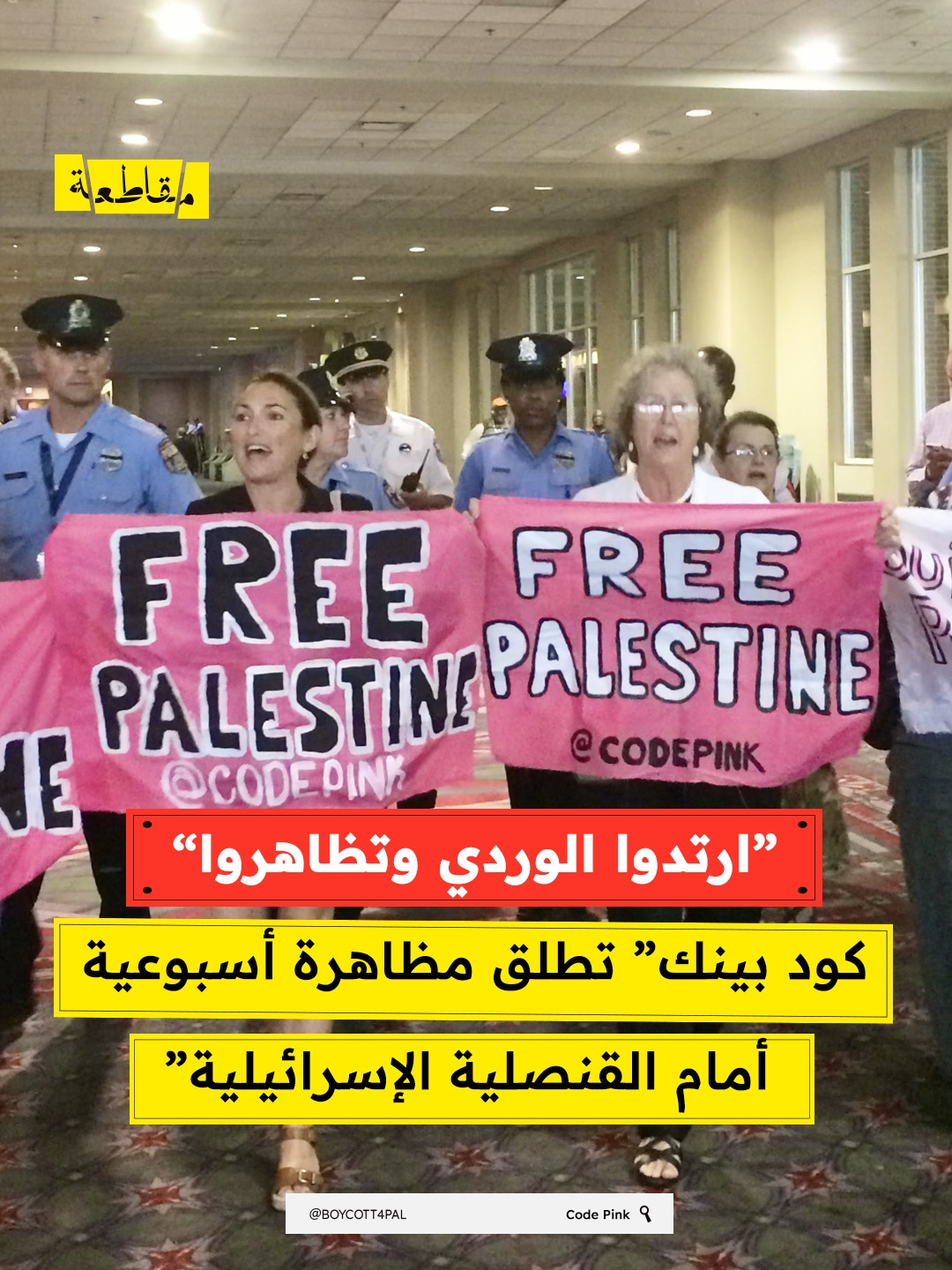 وتأتي الدعوة ضمن حملة تضامن مستمرة للضغط من أجل وقف الجرائم الإسرائيلية في غزة، حيث تحث كود بينك المشاركين على ارتداء اللون الوردي وإحضار لافتاتهم وأعلامهم، في مشهد بات علامة أسبوعية في المدينة.
