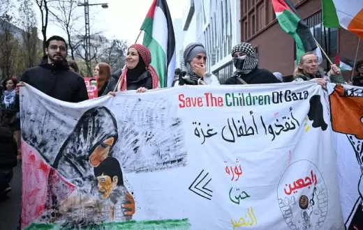 كما رفع المشاركون لافتات عليها عبارات من قبيل "استهداف المدنيين ليس دفاعًا مشروعًا عن النفس، قولوا لا للإبادة الجماعية"، و"انهضوا من أجل فلسطين".