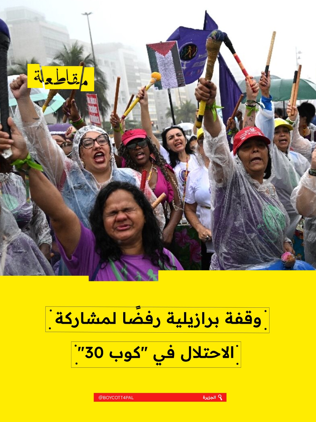 نظّم أنصار فلسطين وقفة احتجاجية أمام مقر التحضيرات لقمة المناخ العالمية "كوب 30" في مدينة بيليم شمالي البرازيل، رفضًا لمشاركة وفد إسرائيلي في المؤتمر.