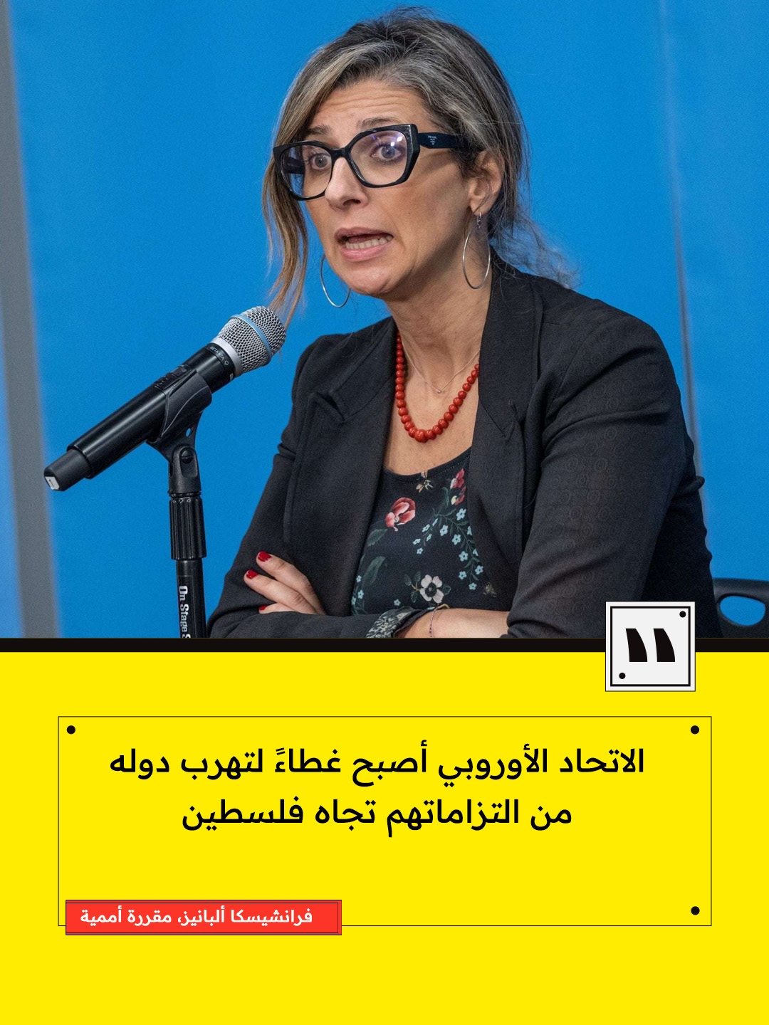 وحذّرت "ألبانيز" من أن استمرار اتفاقية التجارة بين الاتحاد الأوروبي و"إسرائيل" يمثّل خطرًا كبيرًا، مشيرةً إلى أن معارضة كلّ من ألمانيا وإيطاليا لتعليق الاتفاقية تُبقيها سارية رغم الانتهاكات المستمرة.