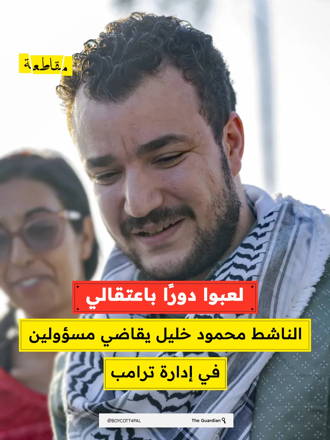 رفع الناشط الفلسطيني محمود خليل، الذي شارك في احتجاجات جامعة كولومبيا واعتقلته إدارة الهجرة والجمارك الأمريكية (ICE) في مارس/آذار الماضي، دعوى قضائية يطالب فيها إدارة ترامب بالكشف عن اتصالاتها مع جماعات يمينية معادية للفلسطينيين، يقول إنها لعبت دورًا مباشرًا في اعتقاله ومحاولة ترحيله.