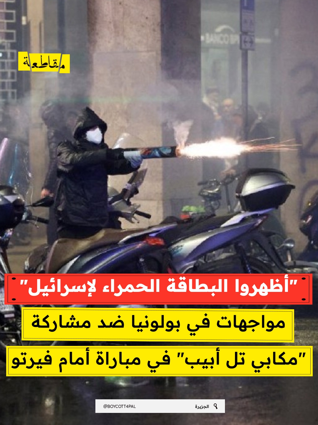 شهدت مدينة بولونيا الإيطالية، مساء أمس الجمعة، مواجهات بين الشرطة ومتظاهرين مؤيدين لفلسطين احتجوا على مشاركة فريق "مكابي تل أبيب" في مباراة بالدوري الأوروبي لكرة السلة أمام فريق فيرتوس بولونيا.
