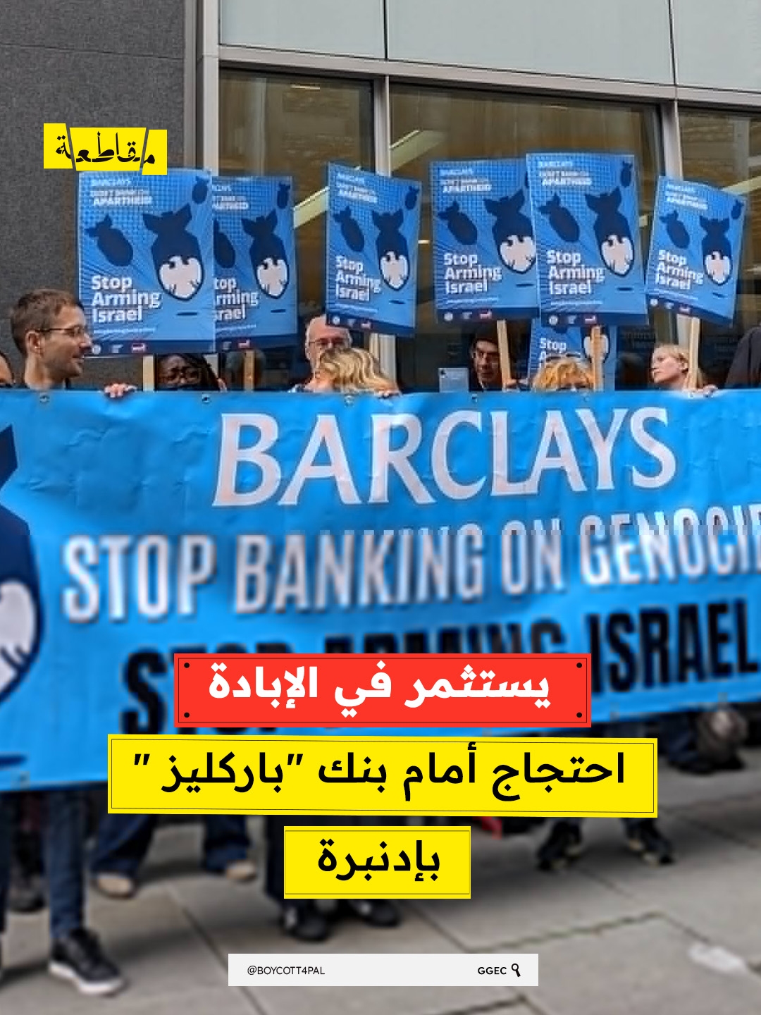 يستثمر في الإبادة ..احتجاج أمام بنك "باركليز " بإدنبرة