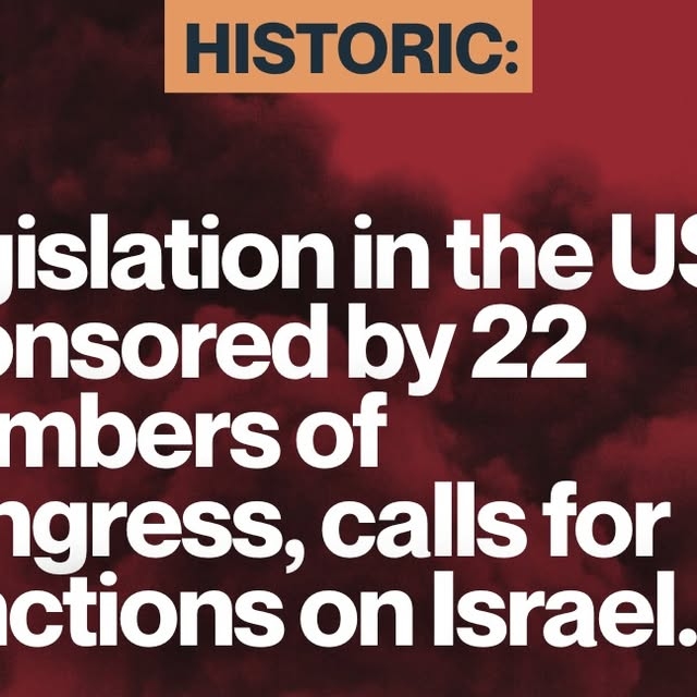 وقالت الحركة إن مشروع القرار، الذي شارك في رعايته 22 عضوًا من مجلس النواب، يمثّل أول مرة يدعو فيها تشريع داخل الكونغرس بشكل صريح إلى فرض عقوبات على "إسرائيل"، بعد سنوات من مبادرات اقتصرت على المطالبة بتقييد التمويل أو نقل الأسلحة.
